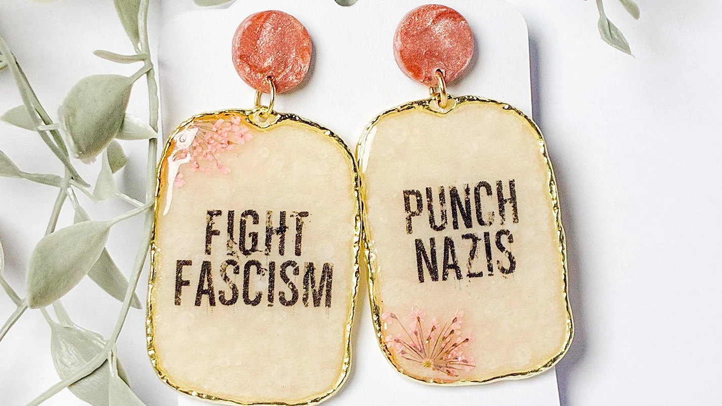 No results found Jewelry Keffiyeh Printed Clay Earrings Fight Fascism Clay Earrings Caps Hoodies Tees Bumper Stickers